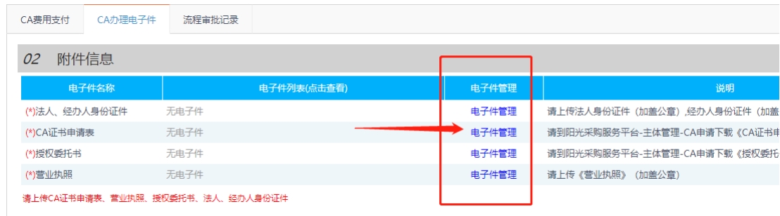 CA辦理電子件-電子件管理上傳所需要的電子文件信息。