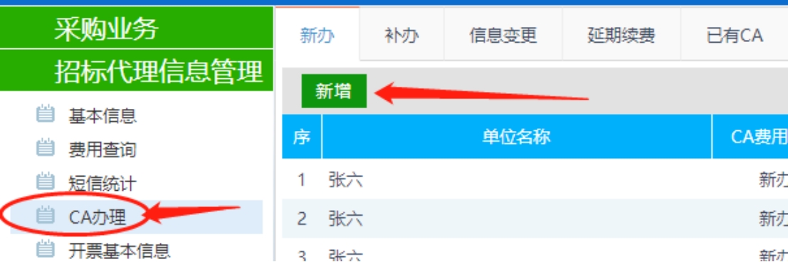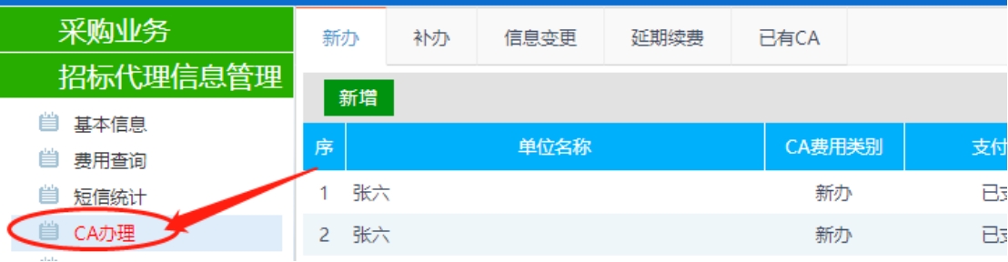 采購代理CA申請位置:招標代理信息管理-CA辦理。