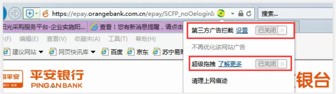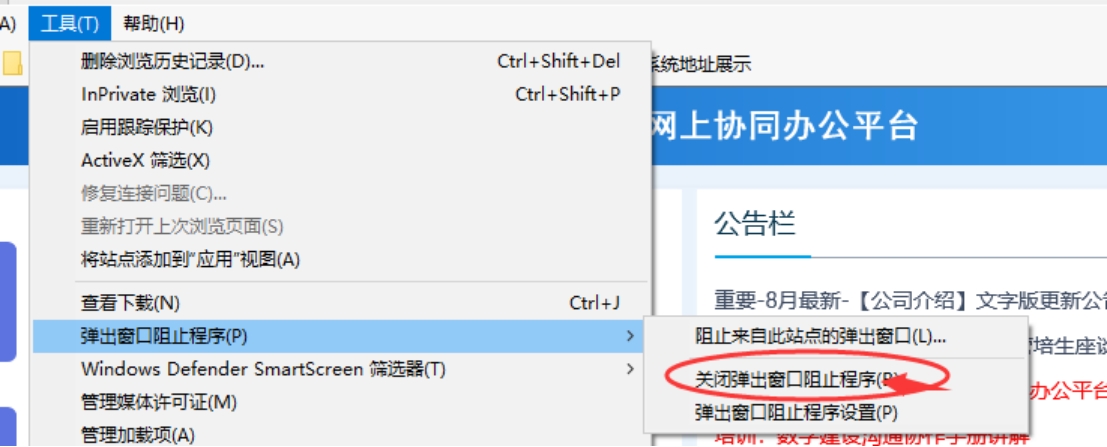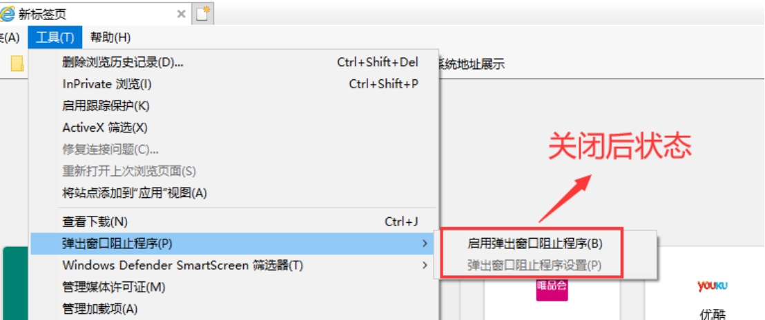 ①關閉IE瀏覽器彈出窗口阻止程序。
